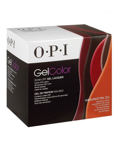 1 each of the following 15 ml- .5fl. oz. GelColor: Freedom of Peach, Squeaker of the House, Shh... It's Top Secret!, Madam President, OPI by Popular Vote, We the Female. 1 tabletop instructions. 1 20ct Expert Touch Removal Wrap. 1 Color palette.